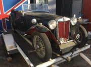 1949 MG TC with a documented under 10,000 original miles. Complete history of previous ownership going back to original purchase from dealer in Louisiana. This car is truly unique in that it has not been altered from its factory build. This car was inspected for its originality by “FTFU” and the original “as factory built” confirmed. The one exception is new leather seats installed along with floor mats.