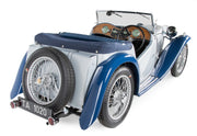 This is a meticulously restored 1936 MGTA, accurate in every detail. The car is one of the 1250 early narrow bodies featuring the wide gas tank and narrow rear wings. The 2 two-tone paint, oxford blue and metallic silver, are period correct and offer a stunning combination. The interior and hood / weather gear are all custom fit. The restoration started with the bare frame and ended with the car being restored to better than new. It was restored by "From The Frame Up", known for workmanship and quality.